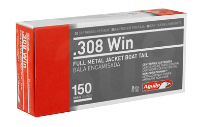 This is Aguila .308 Win 150 Grain Full Metal Jacket Boat Tail Ammo. ZERO IN ON PERFORMANCE. A focus on accuracy makes this a perfect round for target and tactical applications. We added a boat tail to this short-action round to deliver even more precision. This product is sold 20 rounds per box.