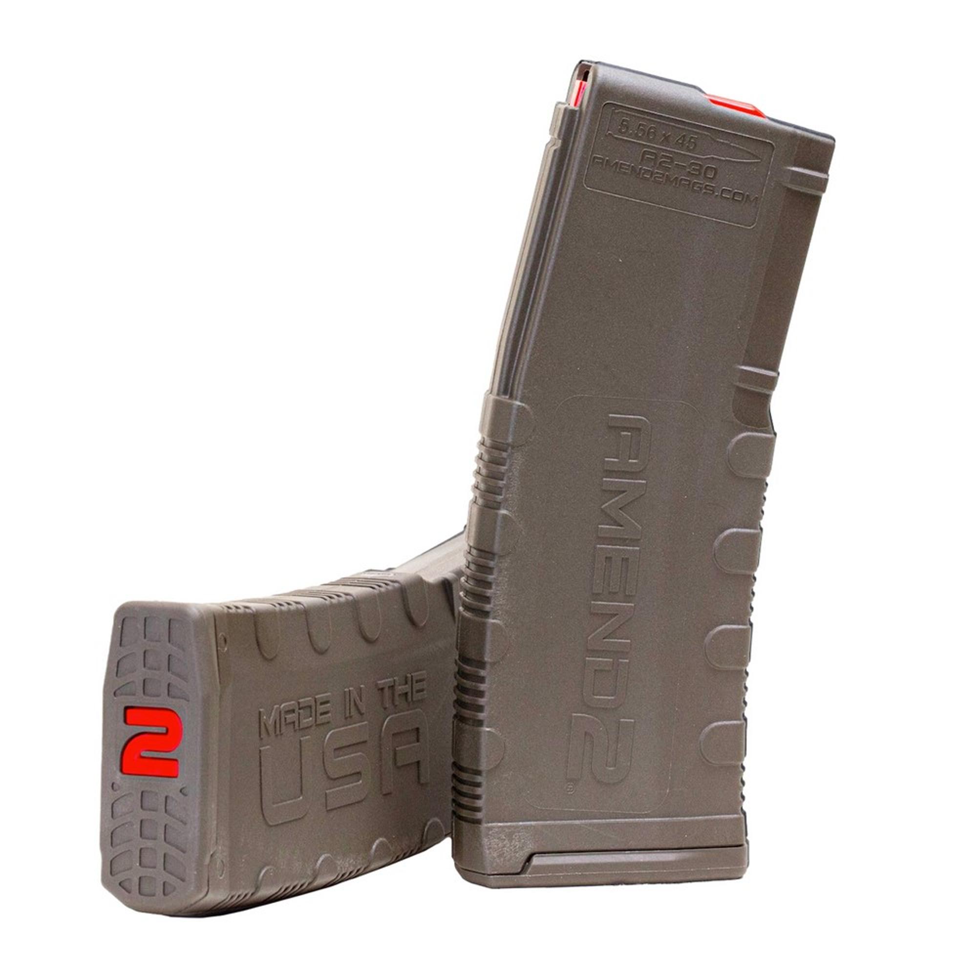 The Amend2 30-round magazine is a sturdy, reliable 5.56×45 NATO (.223 Remington) AR15/M4/M16 magazine made of an advanced polymer material. It is a light, durable, and excellent alternative to the standard M4/M16 USGI aluminum magazine.