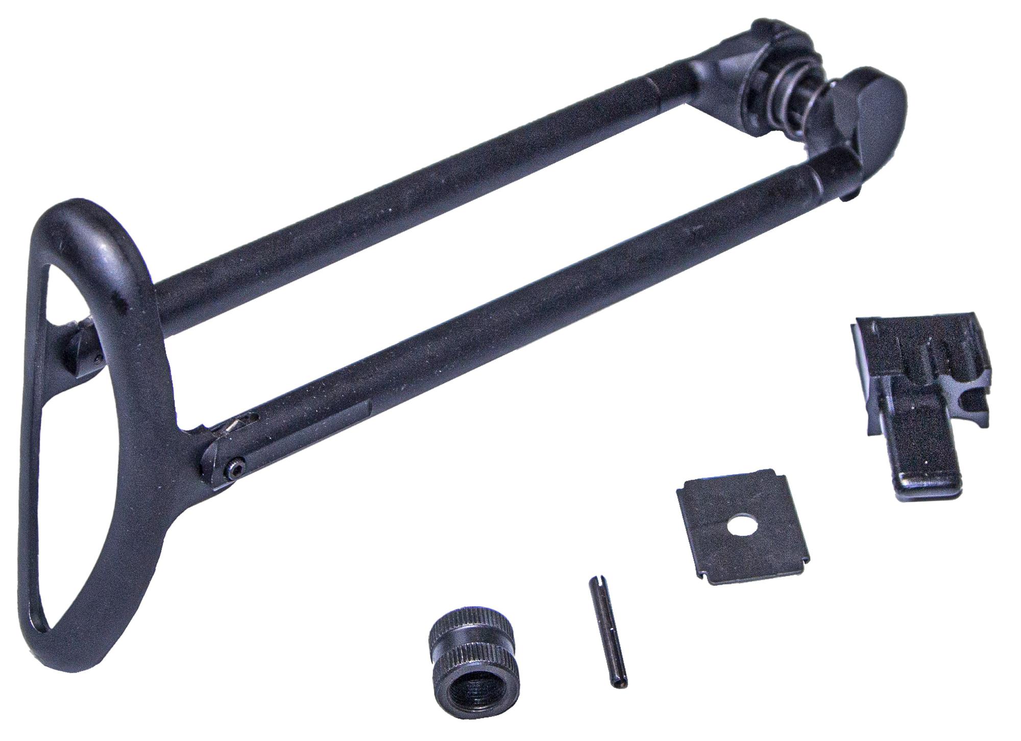 The MP40 collapsible stock is constructed from 6061-T6 aluminum. The entire stock, including the butt plate, folds with the push of a button.