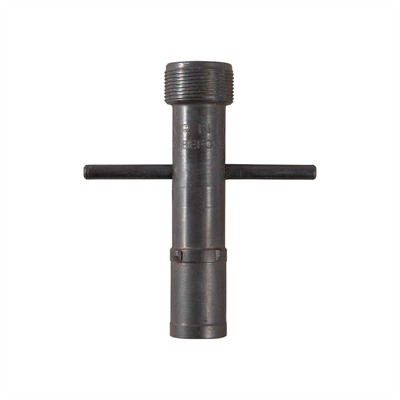 Choke Wrench. This black T wrench has an adjustable handle and thread chasers on one end.