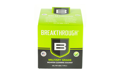 Breakthrough Clean Technologies® Military-Grade Solvent is a user-safe multi-purpose cleaner and degreaser that helps remove oil, grease, and carbon build-up, giving you a no residue clean. Unlike other aromatic cleaners, their odorless formula allows you to clean indoors without having to deal with noxious and unpleasant fumes. Breakthrough Clean Technologies® Military-Grade Solvent cleans quickly and efficiently while reducing the frequency needed between cleanings. It will not stain your wood, plastic, or polymer components and is also safe on Cerakote and hydro-printing. Breakthrough Clean Technologies® Military-Grade Solvent is a benzene-free, HAP-free, state-of-the-art solvent designed to help users break out of the tangle of regulations regarding emissions, disposal, and industrial health hazards. Breakthrough Clean Technologies® Military-Grade Solvent is an odorless, low toxicity, high-purity hydrocarbon that exhibits a very low degree of irritancy to the eyes and is non-irritating to the skin. It has a low vapor pressure to control Volatile Organic Compound (VOC) emissions, is non-carcinogenic, and is not regulated under SARA, Title III, Sections 302 or 313, CERCLA, and RCRA requirements. Breakthrough Clean Technologies® Military-Grade Solvent has no listed components and characteristics of hazardous waste per the EPA. Breakthrough Clean Technologies® Military-Grade Solvent has been awarded a complete Toxicity Clearance by the U.S. Army Center for Health Promotion and Preventative Medicine.
