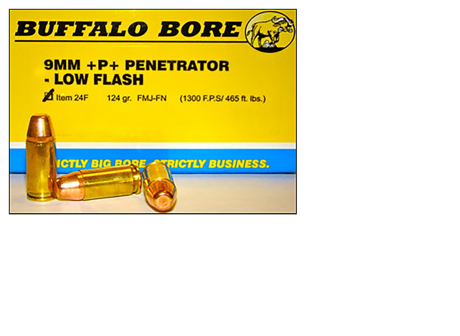 Buffalo Bore 9mm Luger +P 124gr Full Metal Jacket Flat Nose Ammo – 20rds