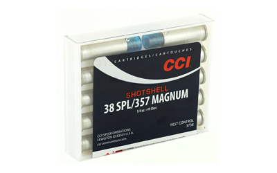 This is CCI ShotShell 38 Spl/357 Mag 100 Grain #9 Shot Pest Control Ammo. Also known as Rat Shot, this CCI load is ideal for taking out snakes and other pests that are small targets and leave little margin for error. Take them out with our exclusive centerfire handgun shotshells. The loads produce consistent patterns that make it easier to knock down nasty critters in tight quarters. This product is sold 10 rounds per box.