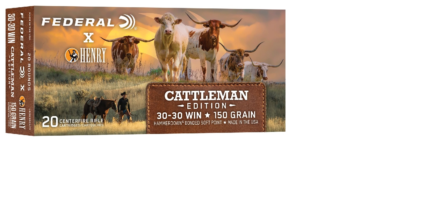 Whether you’re looking to hunt deer, hogs and other big game, or just channel your inner cowboy, Federal and Henry Repeating Arms have the combination you need. Designed in partnership between the two iconic brands, Cattleman Edition 30-30 Win. uses patented HammerDown technology to pair perfectly with Henry’s American Cattleman and other lever-action rifles.