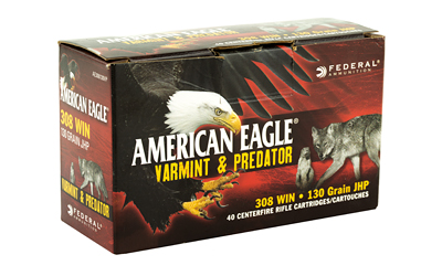 Federal Varmint + Predator 308 Win 130gr JHP Ammo – 40rds