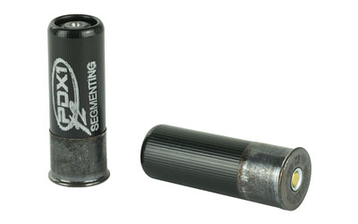 PDX1 Defender 12-gauge ammunition features a distinctive black hull, black oxide high-base head and a 1 oz segmenting rifled slug. Upon impact, the slug breaks into three equal segments compensating for aim error and providing critical penetration. This unique design is applicable for short and long range situations.