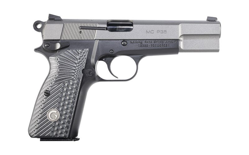 The EAA Girsan MC P35 is a modern take on the classic Hi-Power pistol design, combining timeless aesthetics with enhanced ergonomics and performance. This two-tone pistol features a tungsten-finished slide paired with a black frame and G10 grips, offering a sleek and functional design for superior handling.