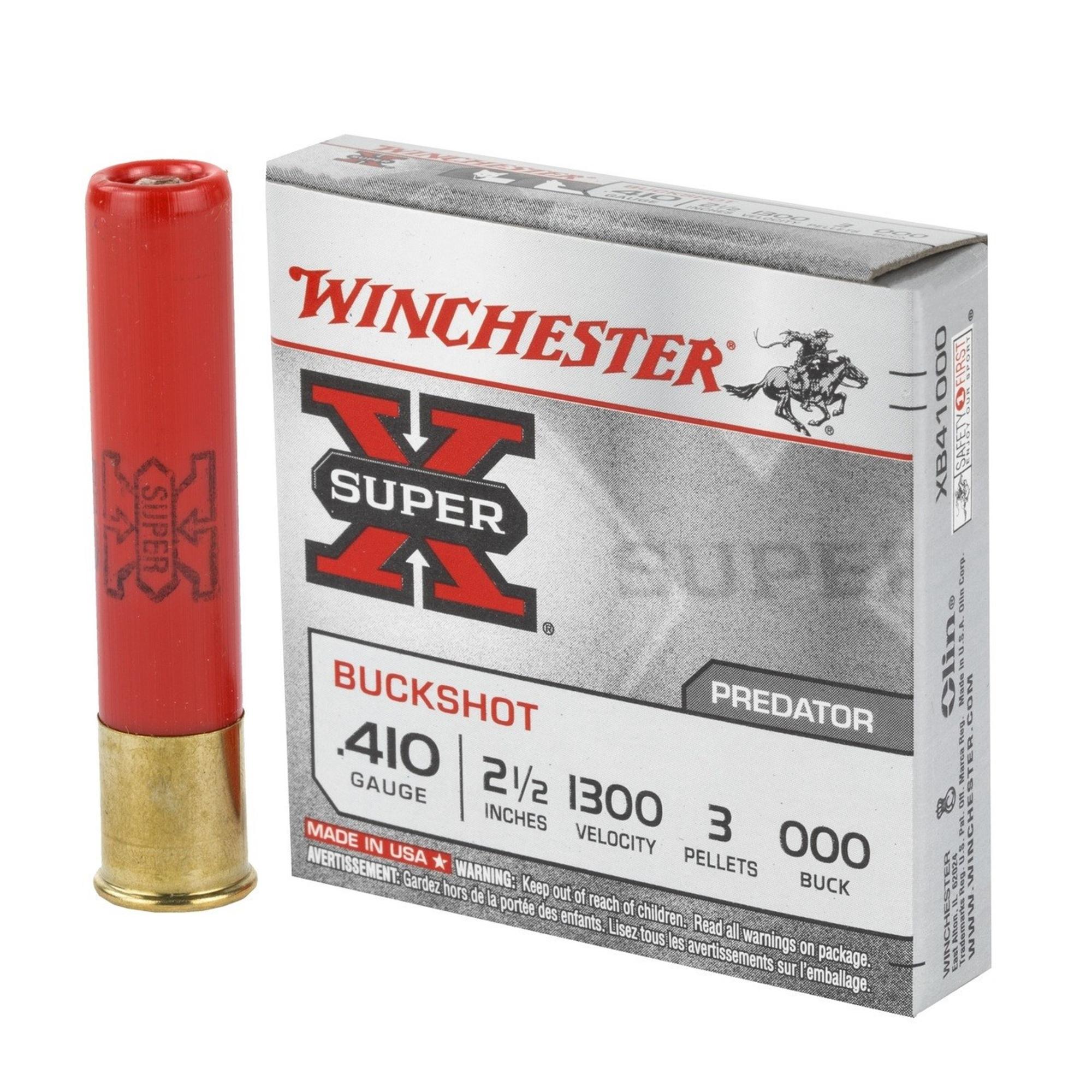 Winchester Super-X 410 Gauge 2-1/2″ 3 Pellets 000 Buck Ammo – 5rds