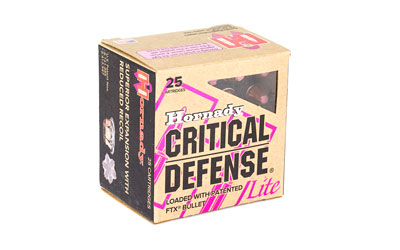 This is Hornady 38 SPL 90 Grain FTX Critical Defense Lite Ammo. Since their inception, conventional hollow point pistol bullets have performed well, but have never delivered 100% reliability, especially in self-defense situations. The patented Flex Tip technology used in Critical Defense ammunition eliminates the clogging and inconsistency that often plagues hollow point bullets. Hornady achieved this by using the same tip material used in LEVERevolution ammunition. All Critical Defense ammunition is loaded in nickel-plated cases for increased visibility in low-light situations. Premium low flash propellants deliver proven performance, even in very short-barreled handguns, and won’t disrupt your vision. Reliable expansion and dependable terminal performance can be counted on for concealed carry and personal protection. This product is sold 25 rounds per box.