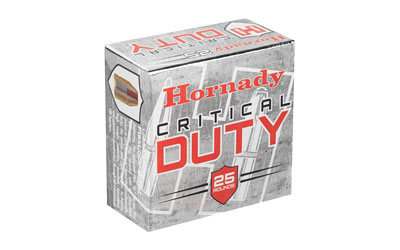 Critical Duty features a high-antimony lead core that is extremely tough and delivers controlled expansion. It also provides a more economical choice than similar bonded bullets. The FlexLock bullet incorporates two revolutionary Hornady features: the no-clog, patented Flex Tip design and the heavy-duty jacket-to-core InterLock band. It utilizes a large mechanical jacket-to-core InterLock band that keeps the bullet and core from separating for maximum weight retention and proven terminal performance through. Nickel plating resists corrosion and greatly enhances low-light chamber checks while combining the cannelured bullet with a crimped case ensures no bullet setback during feeding.