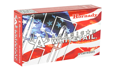 American Whitetail exclusively features Hornady InterLock bullets with exposed lead tip for controlled expansion and lead-alloy core for reliably hard-hitting performance. The InterLock ring inside the bullet jacket is embedded into the core, ensuring that core and jacket remain locked together during expansion for maximum mass and energy retention. American Whitetail is loaded to conventional velocities, premium propellants are selected to achieve optimum pressure and consistency, ensuring each load is also compatible with semi-automatics.