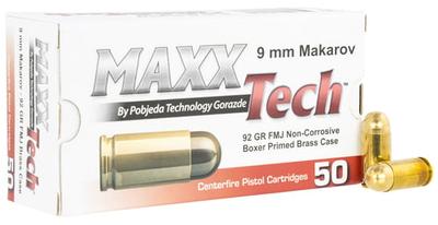 MaxxTech 9mm Makarov 92 Grain FMJ Ammo – 50rds