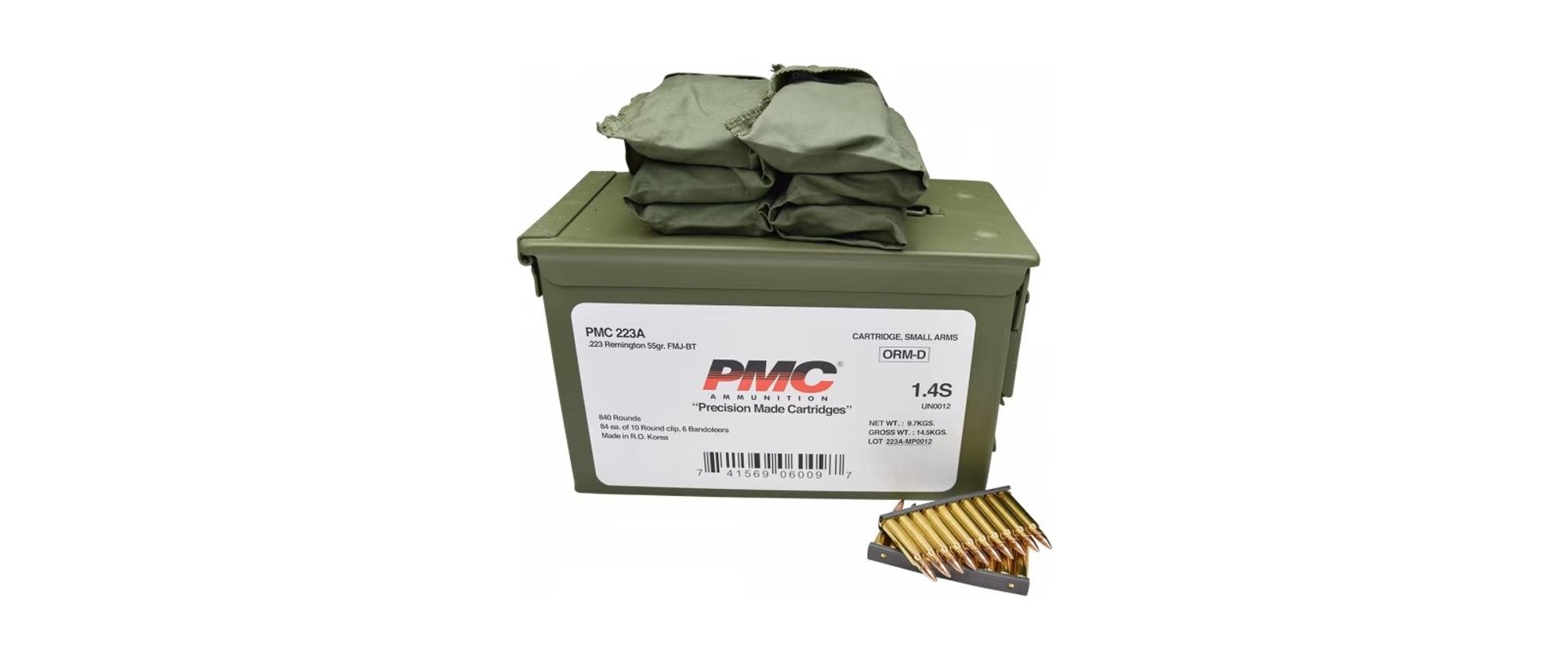 PMC 223 Rem 55 GR FMJ-BT Ammo – 840 Rnd Can