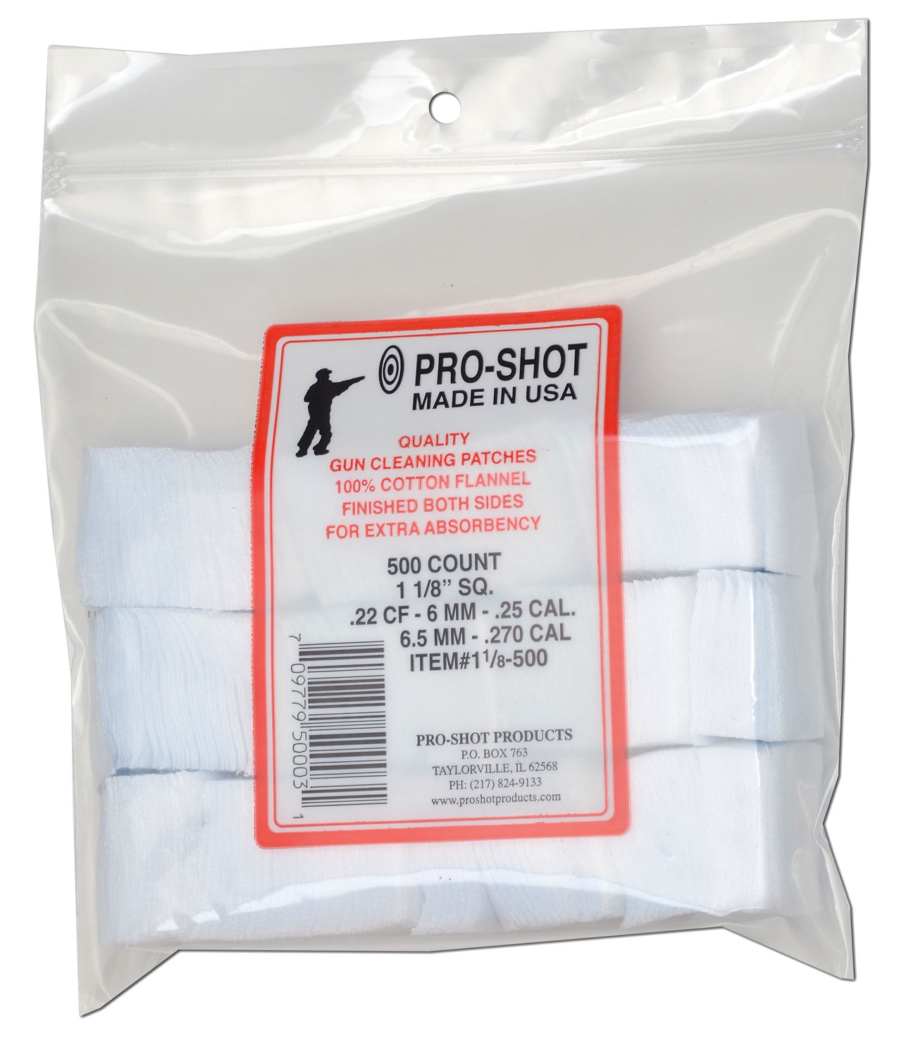 Pro-Shot Cleaning Patches 22 Cal/270 Cal 1-1/8″ Cotton Flannel Square 500ct