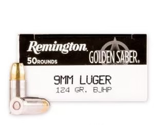 Remington Golden Saber 9mm Luger 124gr BJHP Ammo – 50rds