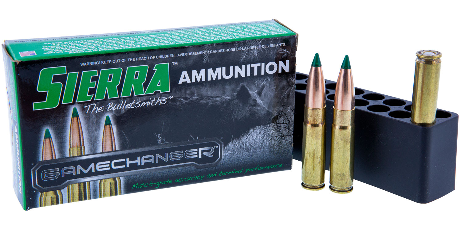 Sierra’s GameChanger ammunition is the result of more than 70 years of designing world-class bullets. Each GameChanger round utilizes a Sierra Tipped GameKing bullet with an extremely accurate boat tail profile and a polymer tip seated in a hollow point design for fast expansion upon impact. A lead core encased in a thick, tough copper jacket delivers outstanding penetration and controlled expansion at any range. Those who have suffered from (BBD) Blackout Bullet Disfunction, understand that most 30 caliber bullets require more velocity than the little Blackout is capable of when it comes to expansion. Sierra designed their 125 grain GameChanger bullet for optimum performance out of the 300 Blackout cartridge and gave it a muzzle velocity of 2115 FPS and a G1 BC of .298. Designed for moderate ranges on deer and hog sized animals, their 300 Blackout ammunition will give you the expansion and penetration needed to bring home the bacon.