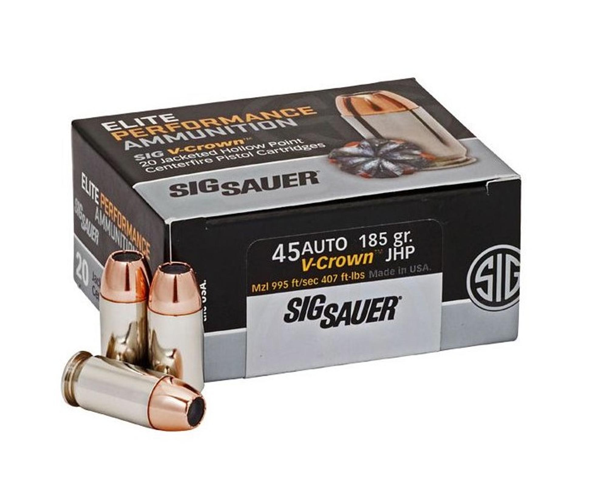 Sig Sauer Elite Defense V-Crown 45 Auto 185 Grain JHP Ammo – 20rd