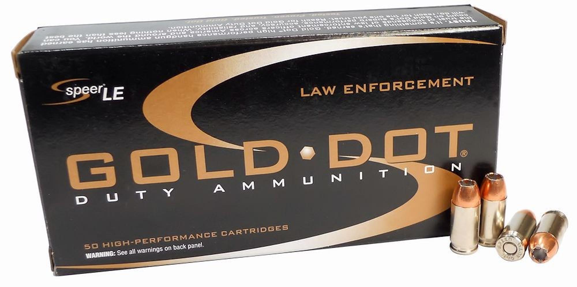 Designed to deliver the high performance today’s law enforcement officers demand. Each Speer LE Gold Dot bullet is individually engineered to provide shot-to-shot uniformity and ensure optimum performance when fired through a variety of barriers. The result is a cartridge that provides officers the ultimate defense in lethal force confrontations.