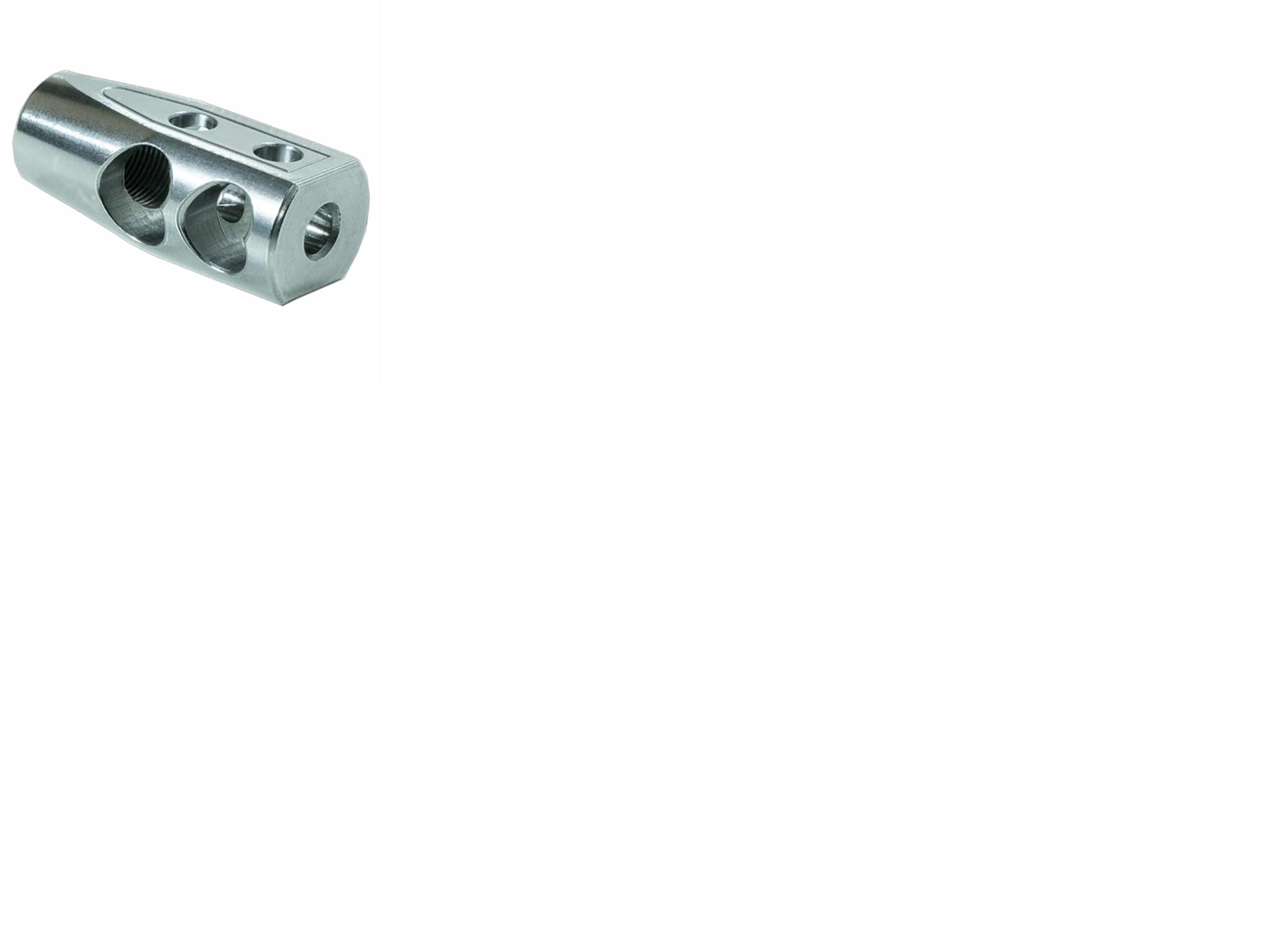 As cumbustion gases exit the muzzle and enter the Heart Breaker they are diverted by the propietary heart shaped ports and forced out both horizontally and vertically. This results in a significant reduction of muzzle rise and recoil. This item is CNC machined and is compatible with barrels having a bore diameter of .223 or less and 1/2-28 muzzle threads. Weight is 2.9oz including the locking nut.