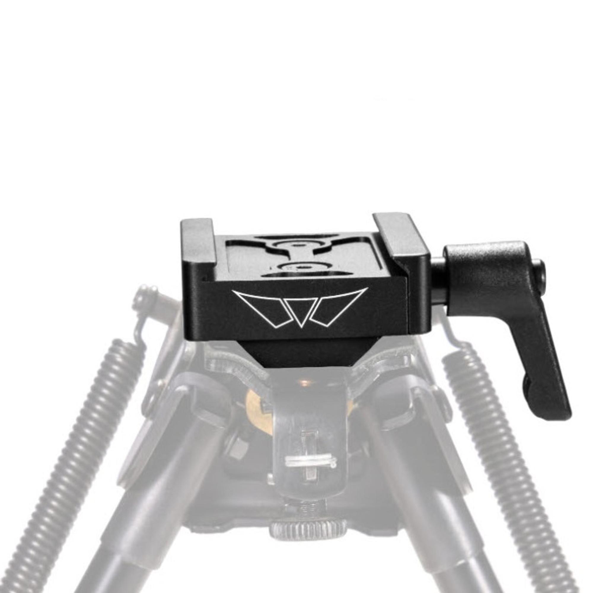 Warne ARCA Rail Adapter, Swivel Stud Style Bipod. This lightweight black anodized aluminum rail adapter is designed to securely install and easily remove bipods that utilize a swivel stud for attachment. This adapter fits on the ARCA style rail found on high precision rifles and quick mounts via a large clamping lever. The adapter accepts a standard sling swivel eyelet (included) to the underside allowing for bipod attachment. Designed and manufactured in the U.S.A.