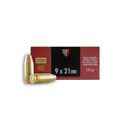 This is Fiocchi Heritage 9x21mm IMI 123 Grain Full Metal Jacket Truncated-Cone Ammo.