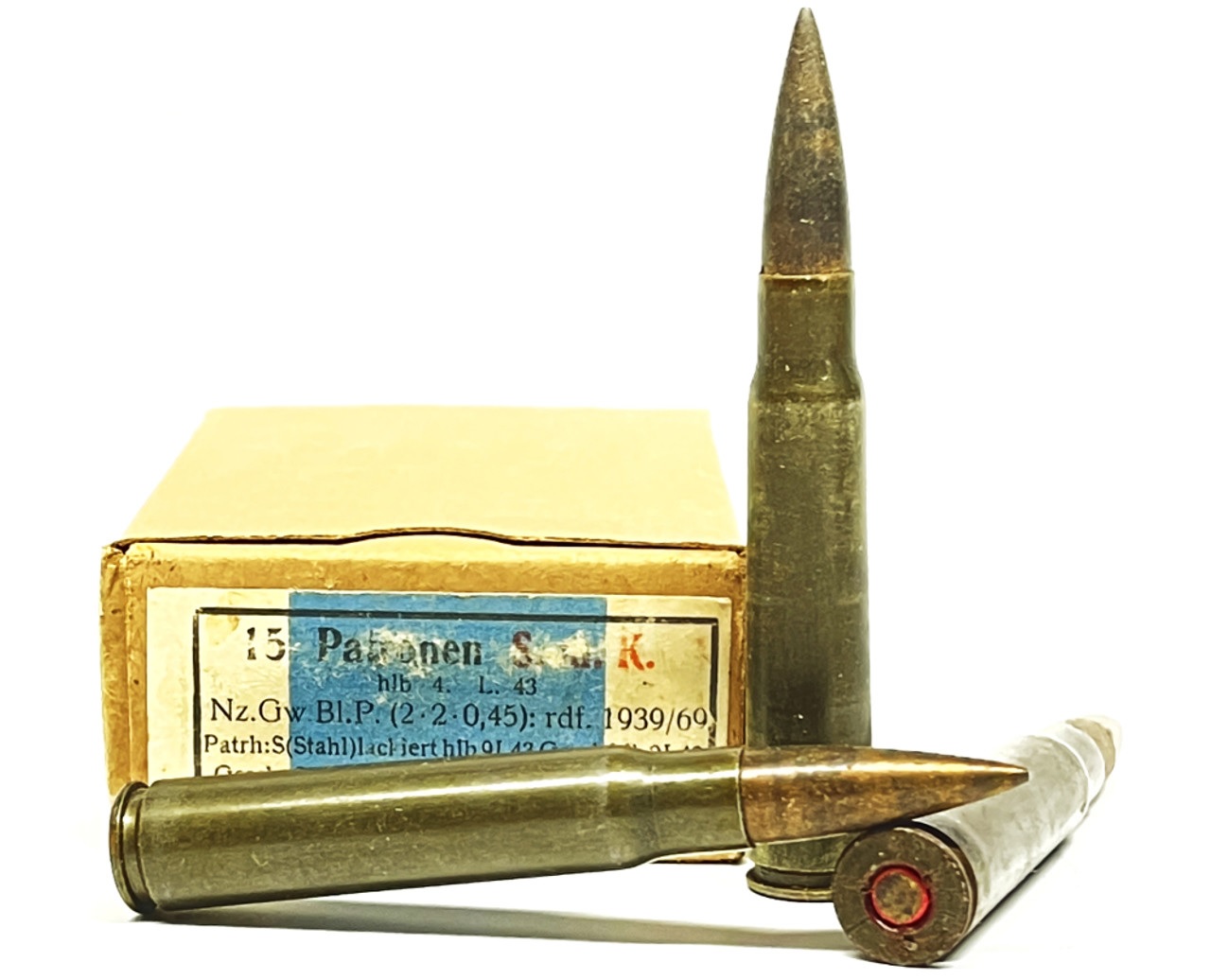 We have here a small batch of original German military surplus 8mm Mauser, made in the early 1940’s during WWII by various German manufacturers.