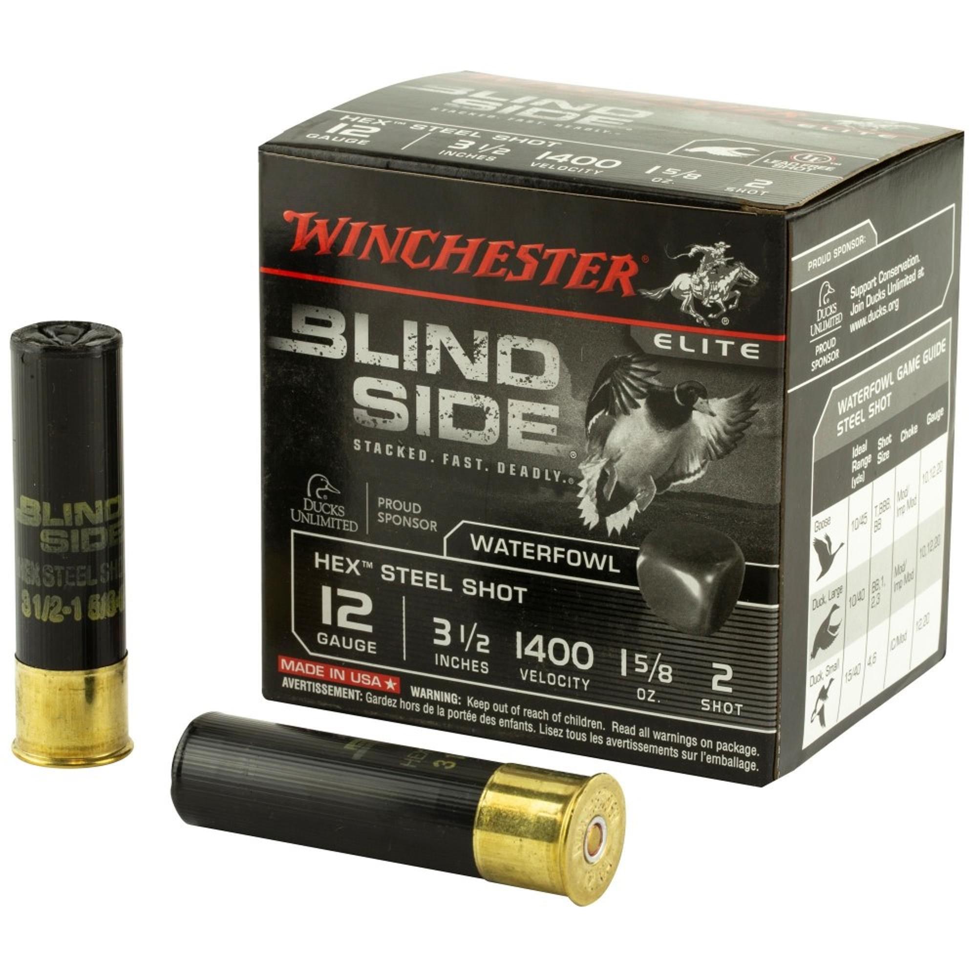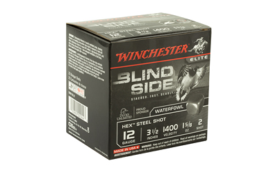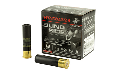This is Winchester Blind Side 12 Gauge 3-1/2″ 1-5/8oz #2 Hex Steel Shot Ammo.