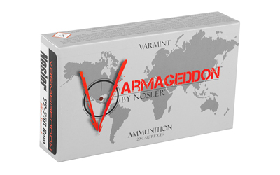 This is Nosler 22-250 Rem 55 Grain Flat-Base Tipped Varmageddon Varmint Ammo. Nosler Varmageddon ammunition is loaded with Nosler Varmageddon bullets, delivering high velocities and exceptional terminal performance on varmints at all practical ranges. The bullets special lead-alloy core combines with the copper-alloy jacket to violently expand upon impact while the flat base design brings you bench-rest accuracy. Created for the high-volume varmint shooter, Nosler Varmageddon ammunition provides Noslers legendary quality and accuracy at an economical price. This product is sold 20 rounds per box.