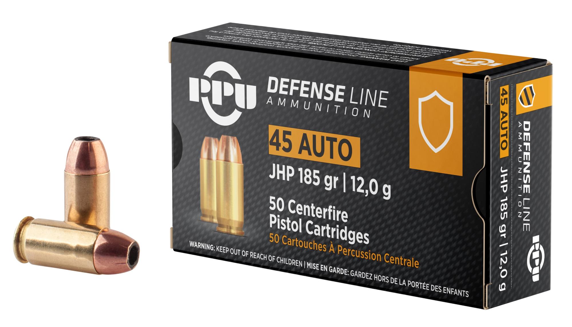 Prvi Partizan (PPU) 45 Auto 185 Grain JHP Defense Line Ammo – 50rds
