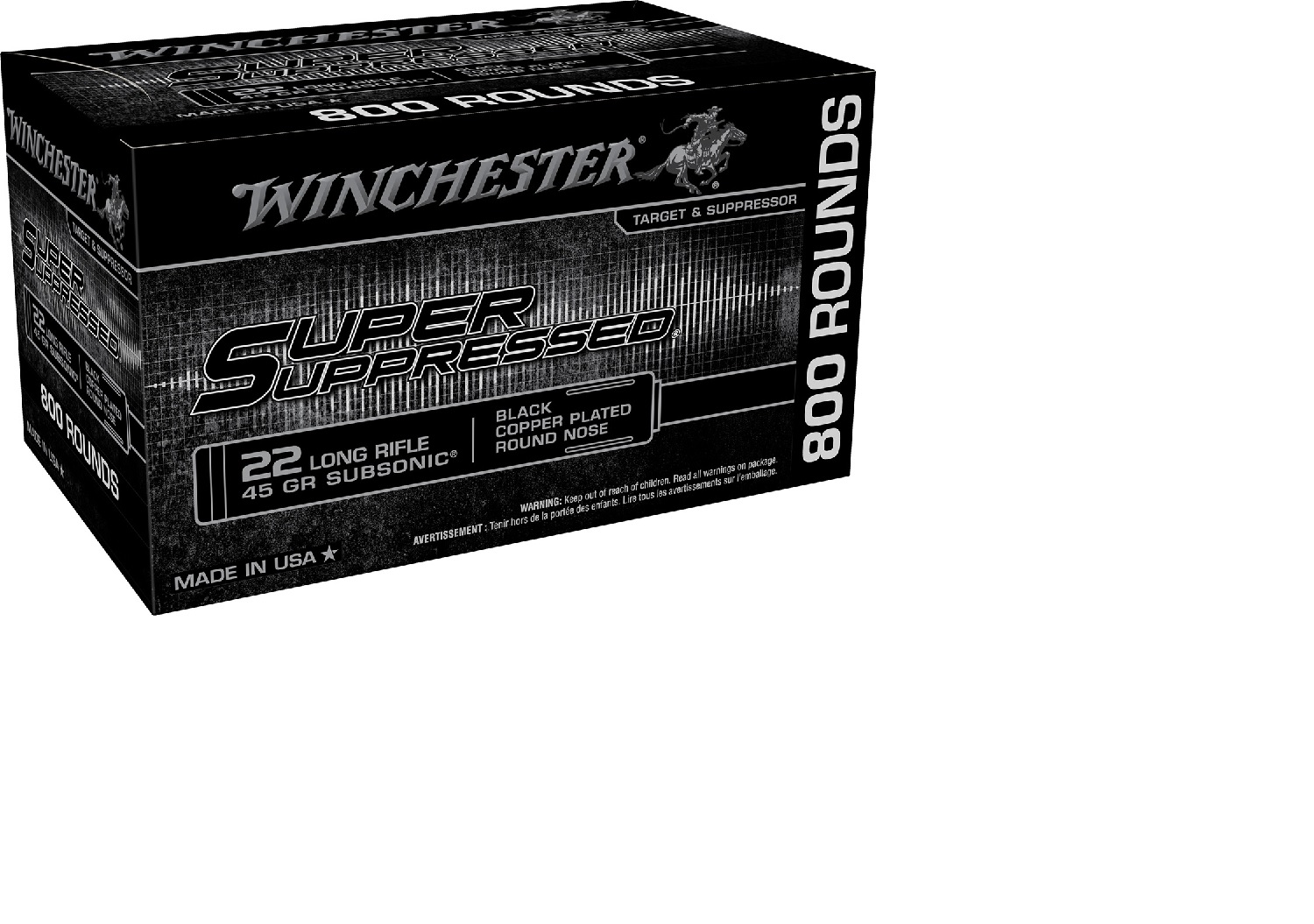 Winchester Super Suppressed 22LR 45gr Black Copper Plated Round Nose Ammo – 800rd